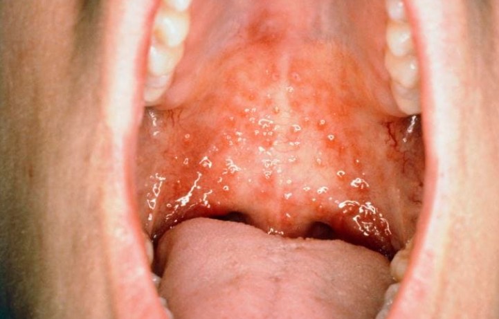 1형 단순포진 바이러스로 인한 일차 감염은 보통 구내염이나 인두염으로 나타납니다. 이러한 감염은 주로 6개월에서 5세 사이의 영아 및 소아에서 발생하며, 갑작스러운 심한 구강 통증과 40°C 이상의 고열이 동반됩니다. 수포가 입술, 혀, 구강점막 등에 생길 수 있으며, 이 수포가 일찍 궤양으로 변할 수 있어 발견되지 않는 경우도 있습니다. 이러한 감염에는 경부 림프절 비대가 동반될 수 있으며, 증상이 치료되지 않아도 일반적으로 7~14일 사이에 회복됩니다. 그러나 림프절 비대는 몇 주간 지속될 수 있습니다. 학령기 소아, 청소년 및 성인에서는 구내염보다 인두염이나 편도염으로 나타날 가능성이 높습니다. 이 경우에는 열, 피로감, 두통, 인후통 등의 증상과 함께 인두와 편도에 수포가 생기며, 수포는 곧 터져서 삼출물을 동반한 궤양으로 변합니다.