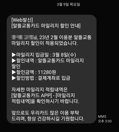 - 알뜰교통카드 마일리지는 매월 초 5영업일에 지급됩니다.