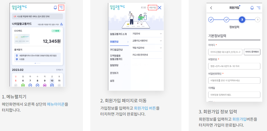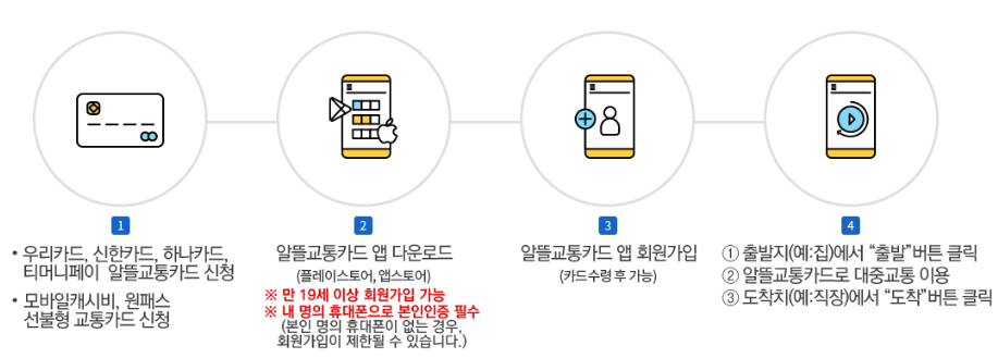 다음과 같은 절차를 거친 후 알뜰교통카드를 사용하실 수 있습니다.