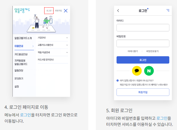 다음과 같은 절차를 거친 후 알뜰교통카드를 사용하실 수 있습니다.
