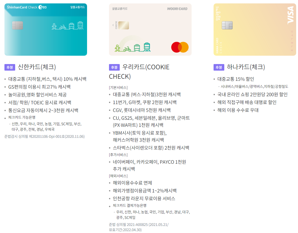 체크, 신용, 선불 카드 종류가 다양하니 개인 사정에 맞게 골라 사용하세요 ^^