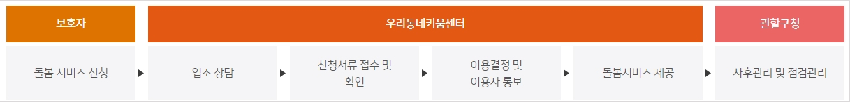 - 보호자가 이용을 희망하는 센터에 돌봄 서비스 신청 (온라인, 전화, 방문)