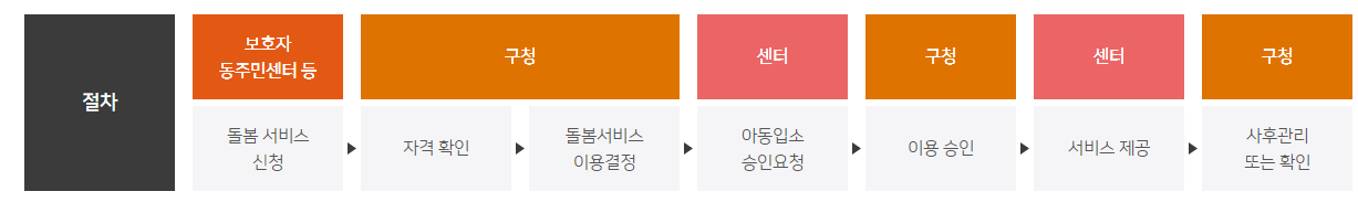 | 신청 방법 및 절차 | 방과후 돌봄서비스 제공·변경 신청서를 관할 주민센터 또는 구청에 제출 | |