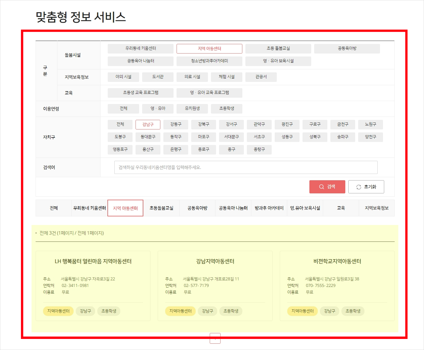 초중등돌봄 - 지역아동센터 : 센터찾기