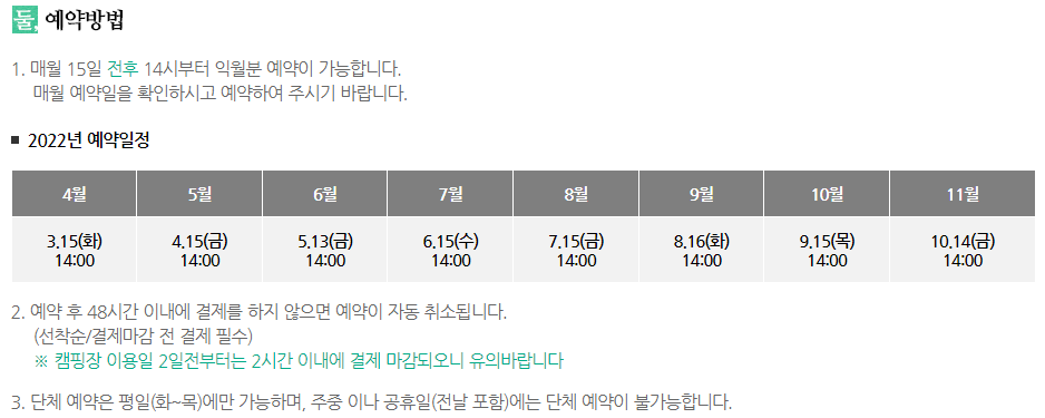 노을캠핑장 예약방법