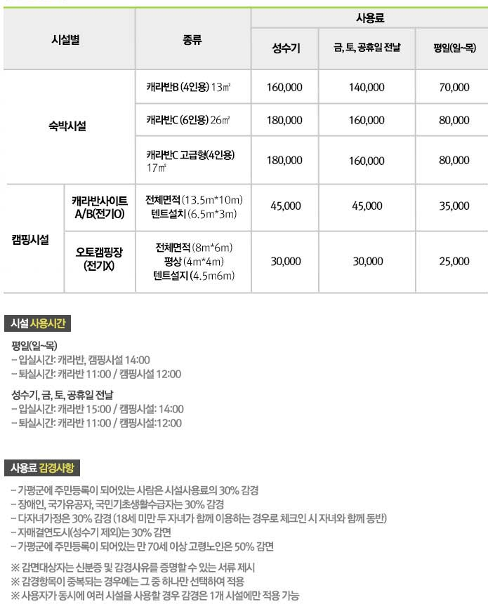 매트 대여와 전기사용은 별도로 요금이 책정되오니 필요시 신청하세요.