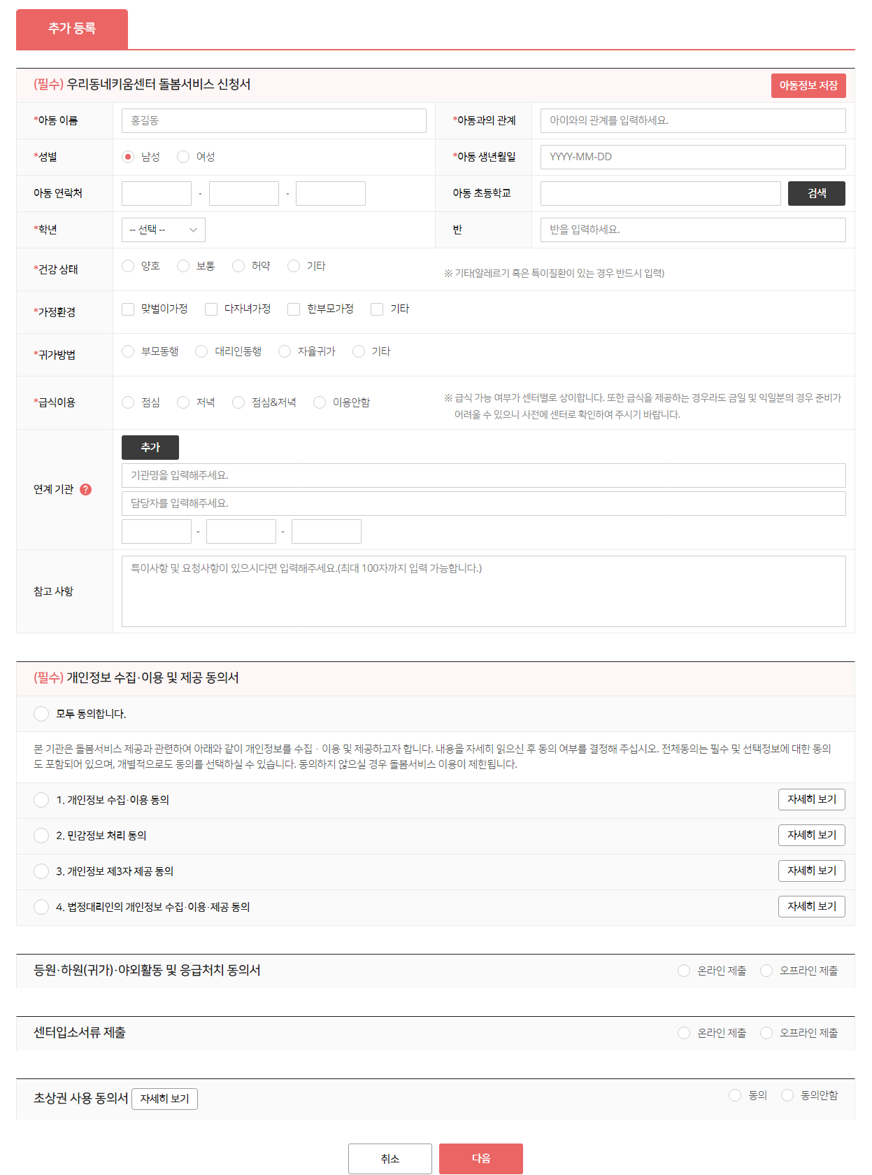 6. 회원가입은 필수입니다. 주거지를 비롯한 아동정보를 입력 후에 예약을 진행하세요~